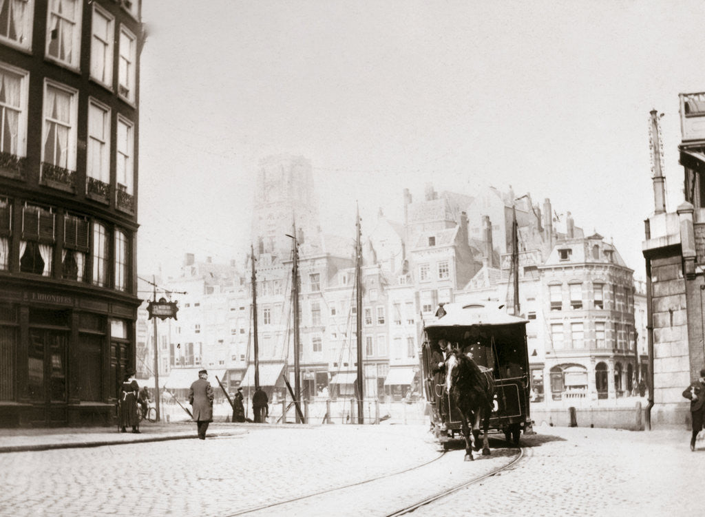 Horse-drawn tram, Rotterdam, 1898. Illustration from a book of photographs taken in Holland and Belgium by James Batkin, (1898).