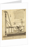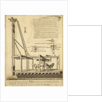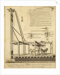 A perspective view of a horse-gin operated pile driver, invented by watch-maker, James Vauloue. The engine was used for driving the piles of the first Westminster Bridge in London which was built between 1739-1750. From Smeaton volume 4, fol. 12v.