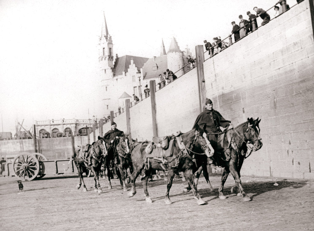 Horseriders, Antwerp, 1898. Illustration from a book of photographs taken in Holland and Belgium by James Batkin, (1898).