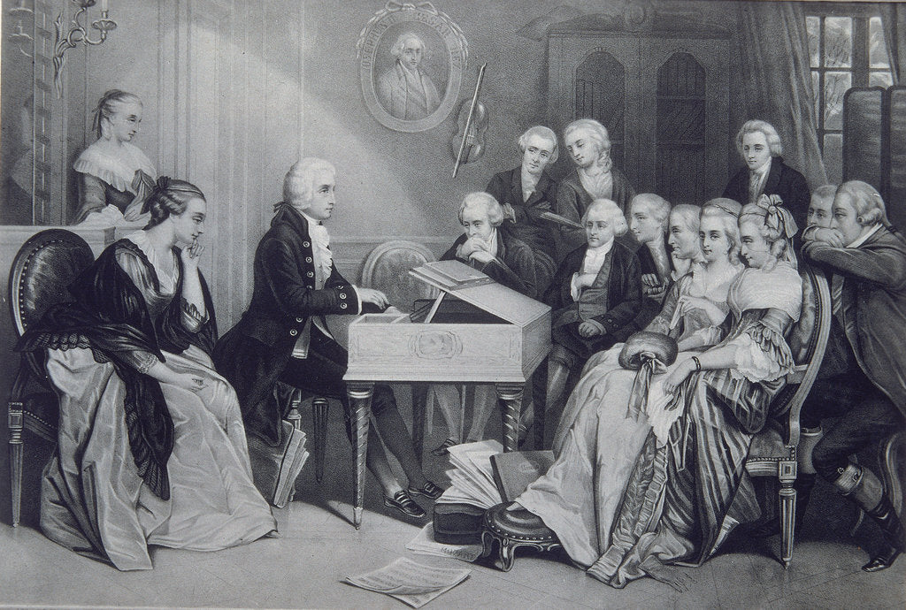 House Concert at the Mozart family in Vienna, 19th century. Found in the collection of the Russian State Library, Moscow.