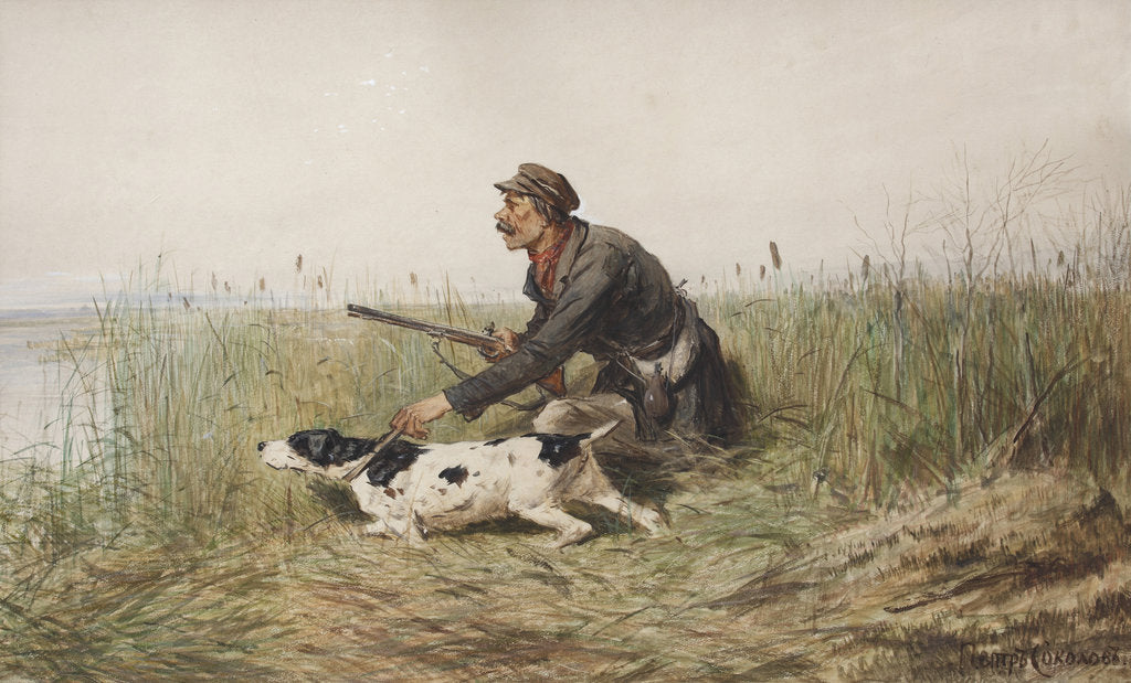 Hunter with hunting dog, 1870s. Found in the Collection of State Museum Abramtsevo Estate, near Moscow.