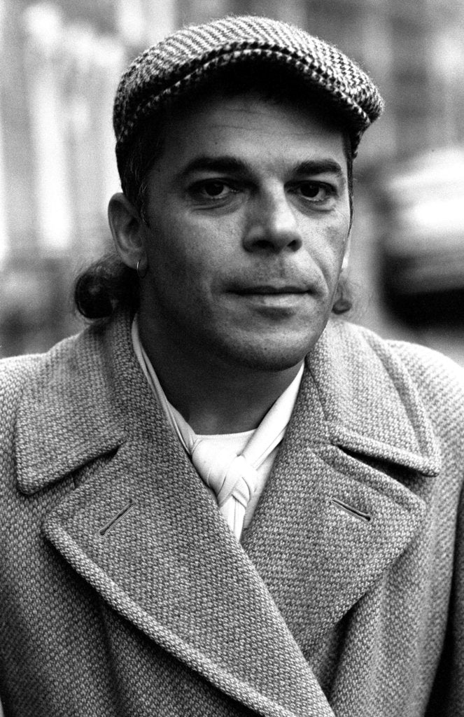 Ian Dury pictured in the street outside his house in Kennington, London. 6th December 1977.