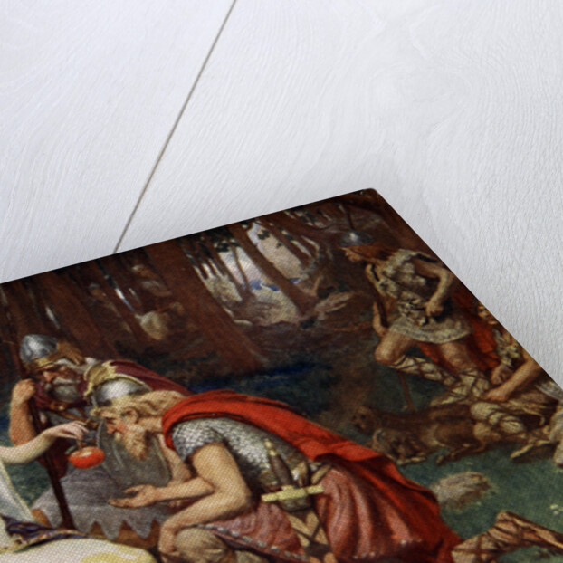 'Idun and the Apples', 1890. Idun is the keeper of apples that give the gods eternal youth. Illustration from Teutonic Myths and Legends by Donald A Mackenzie, 1890.