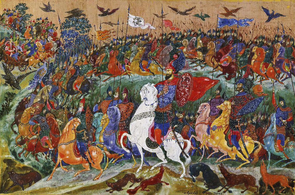 Igor's Campaign, 1932-1933. Illustration to The Tale of Igor's Campaign. Golikov, Ivan Ivanovich (1886-1937). Book design, School of Palekh. Found in the collection of the Museum of Palekh Russian Lacquer Art, Palekh.