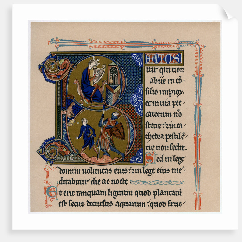 Illuminated initial letter 'B', 13th century, (1901). Detail of a page showing King David playing his harp, from a psalter produced in France. Illustration from The Connoisseur, (December 1901).