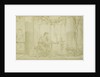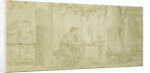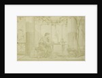 Illustrate Quinti Horatii Flacci Carminum, sitting at table in atrium with winch and amphora, Anonymous, 1855