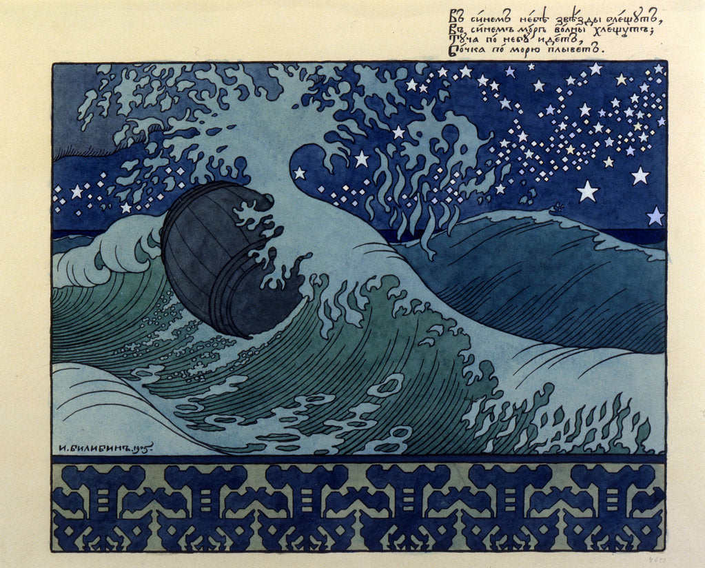 Illustration for the poem The Tale of Tsar Saltan by Aleksandr Pushkin, 1905. Found in the collection of the A Pushkin Memorial Museum, St Petersburg.