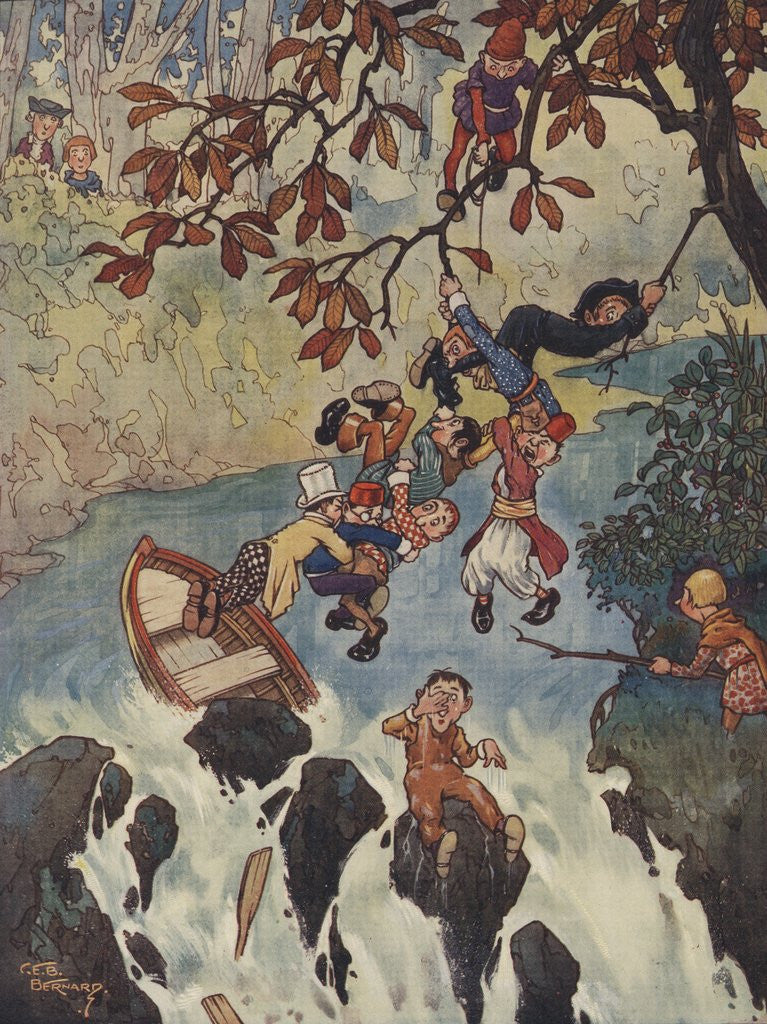 Product images of Illustration of men escaping from boat sinking near waterfall