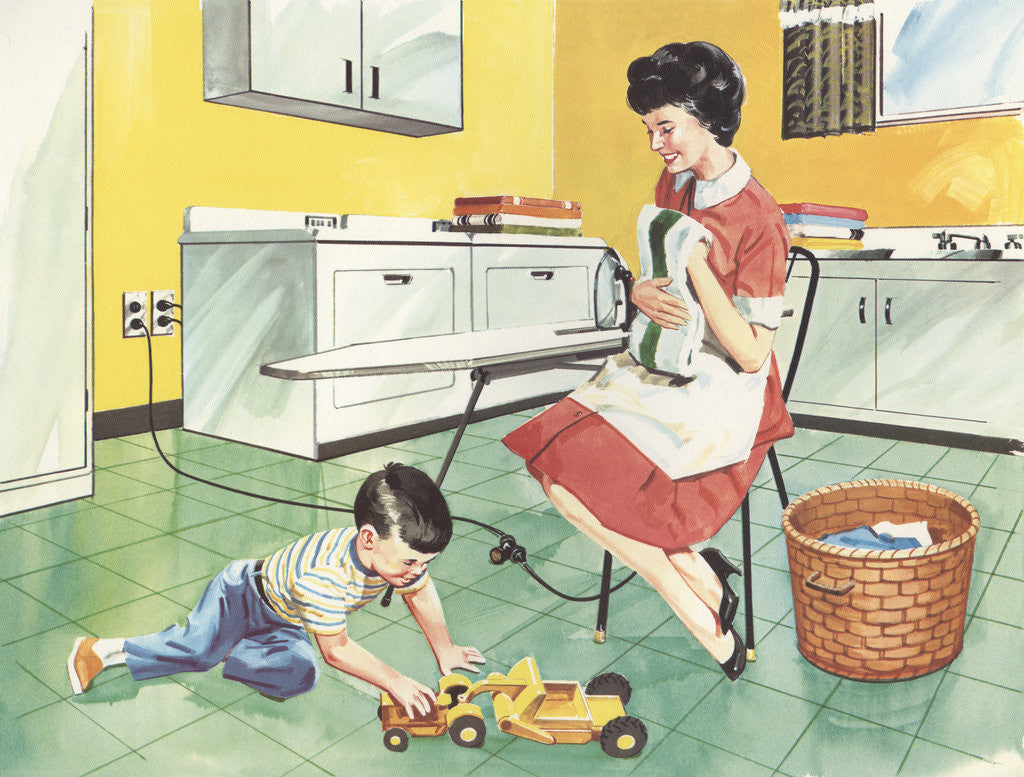 Product details Illustration of Mother and Son Playing in Laundry Room
