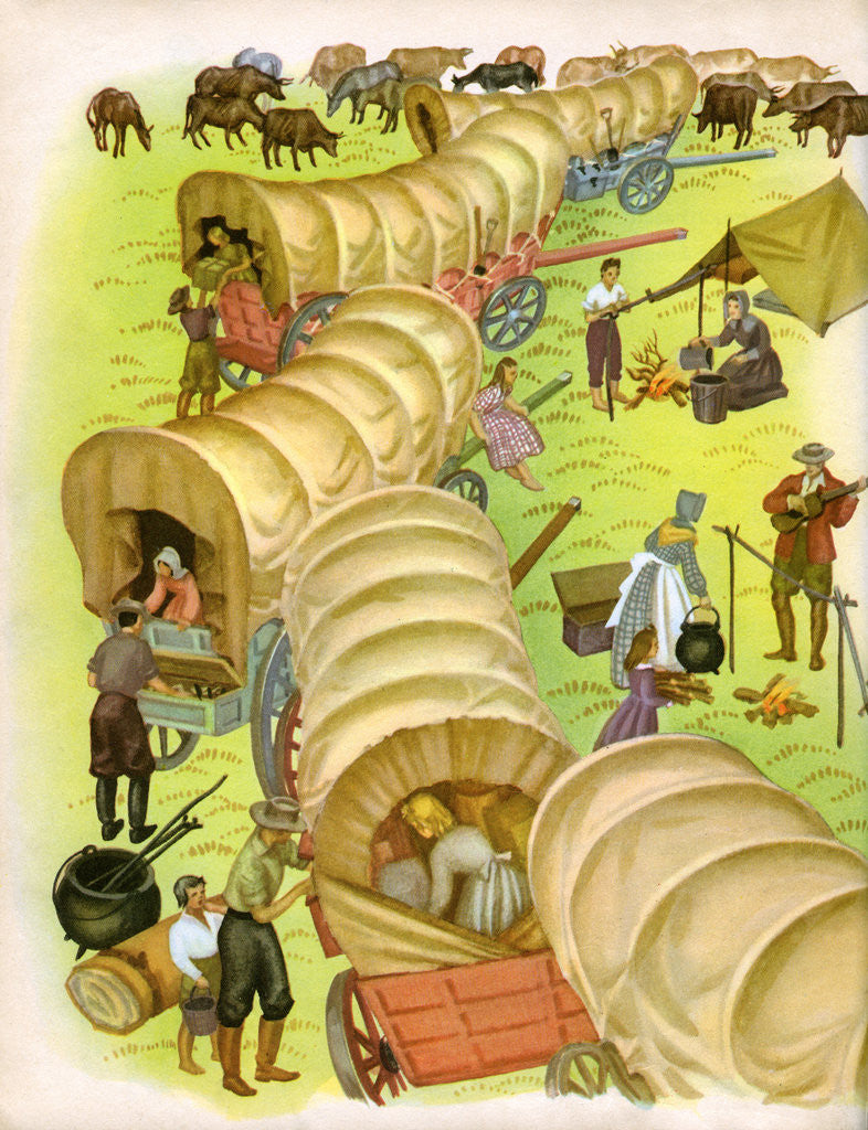 Product images of Illustration of pioneer wagon camp