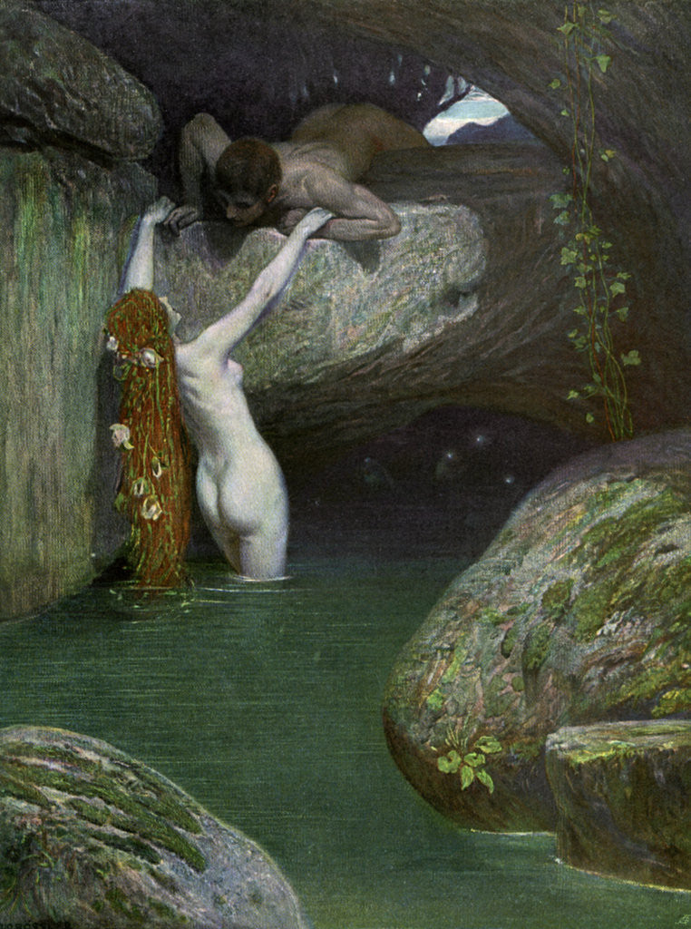 'In the Grotto', 1902-1903. From Penrose's Pictorial Annual 1902-1903, An Illustrated Review of the Graphic Arts, volume 8, edited by William Gamble and published by AW Penrose (London, 1902-1903).