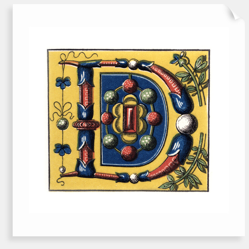 Initial letter 'D', 15th century, (1843). Illustration from Dresses and Decorations of the Middle Ages from the Seventh to the Seventeenth Centuries, by Henry Shaw, (London, 1843).
