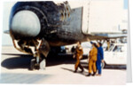 Product images of Inspecting heat tiles, second Space Shuttle flight, November 1981