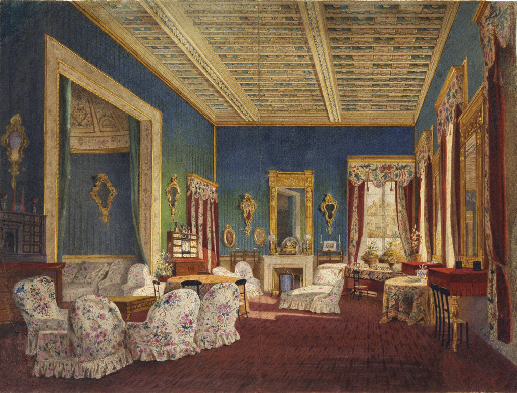 Interior in the Talyzin's Manor House Denezhnikovo. Found in the collection of Museum of History and Art, Ramenskoye.