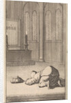 Interior of a mosque with a figure kneeling in prayer, Caspar Luyken, Timotheus ten Hoorn, 1696