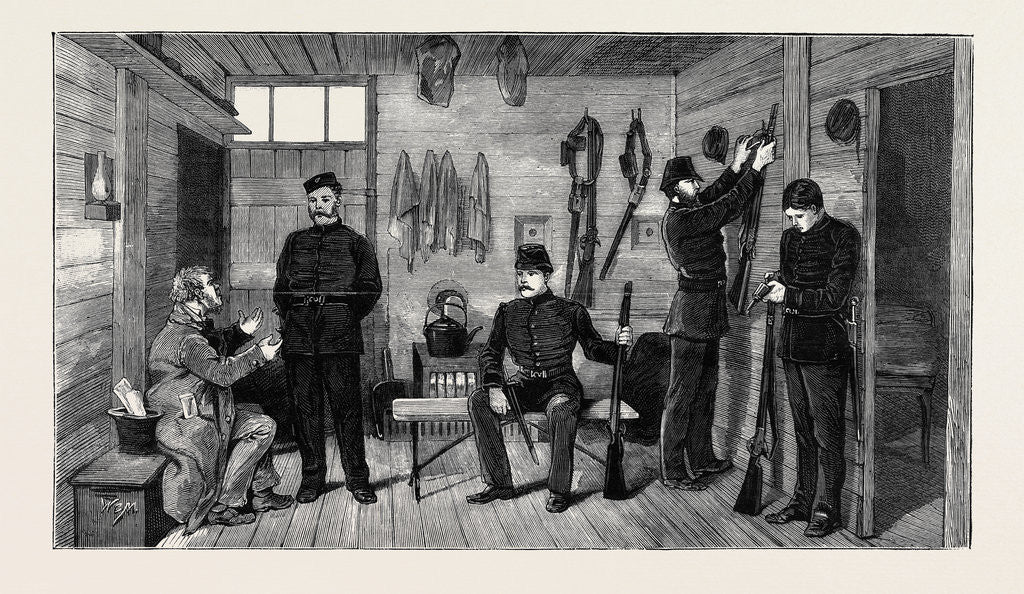 Interior of a Police Hut at Gurranmore, Pallas, County Limerick; Arming to Escort a Process-Server, Ireland