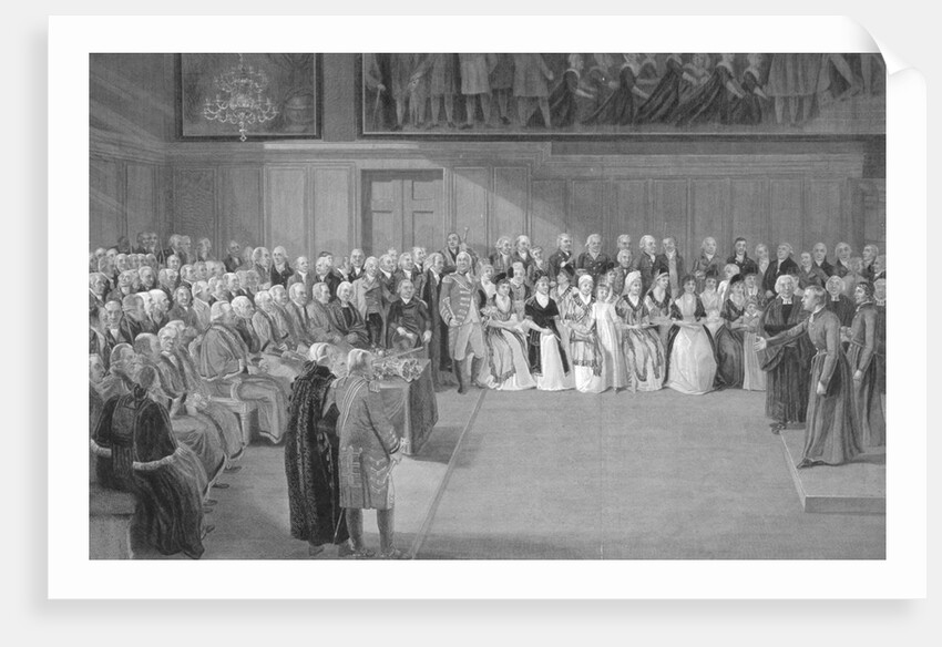 Interior of Christ's Hospital School, Newgate Street, City of London, 1822. Scene showing the annual orations on St Matthew's Day.