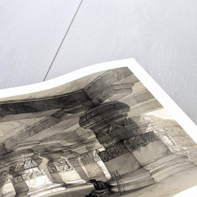 'Interior of Lanka, Ellora', India, 1845; Ellora is famous for its rock temples, a series of caves carved out of the rocky hillside, one and a quarter miles long, in three sections: Buddhist, Brahmanical and Jain.
