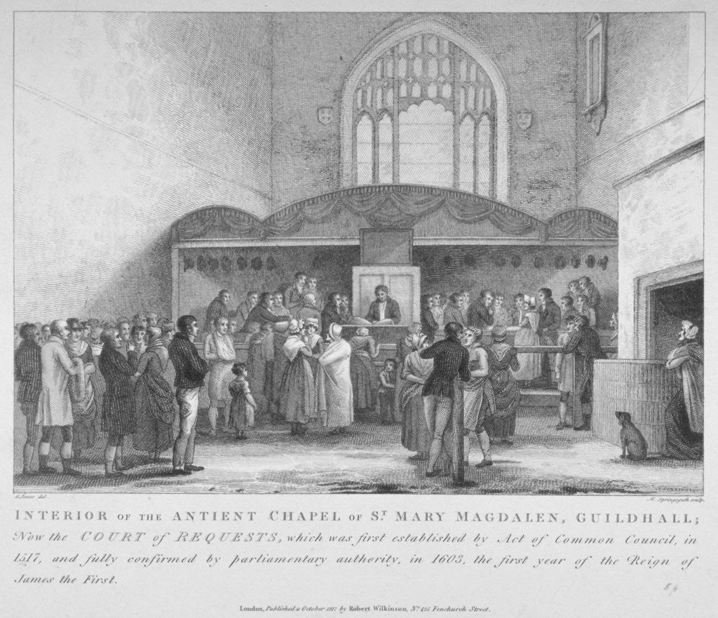 Interior of the Guildhall Chapel, City of London, 1817. The chapel was converted into the Court of Requests by Act of Parliament in 1603.