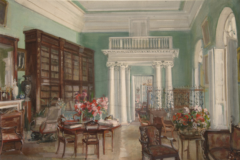 Interior of the Library in the Golitsyn' Nikolo-Uryupino Estate, 1910. Found in the collection of the State Russian Museum, St. Petersburg.