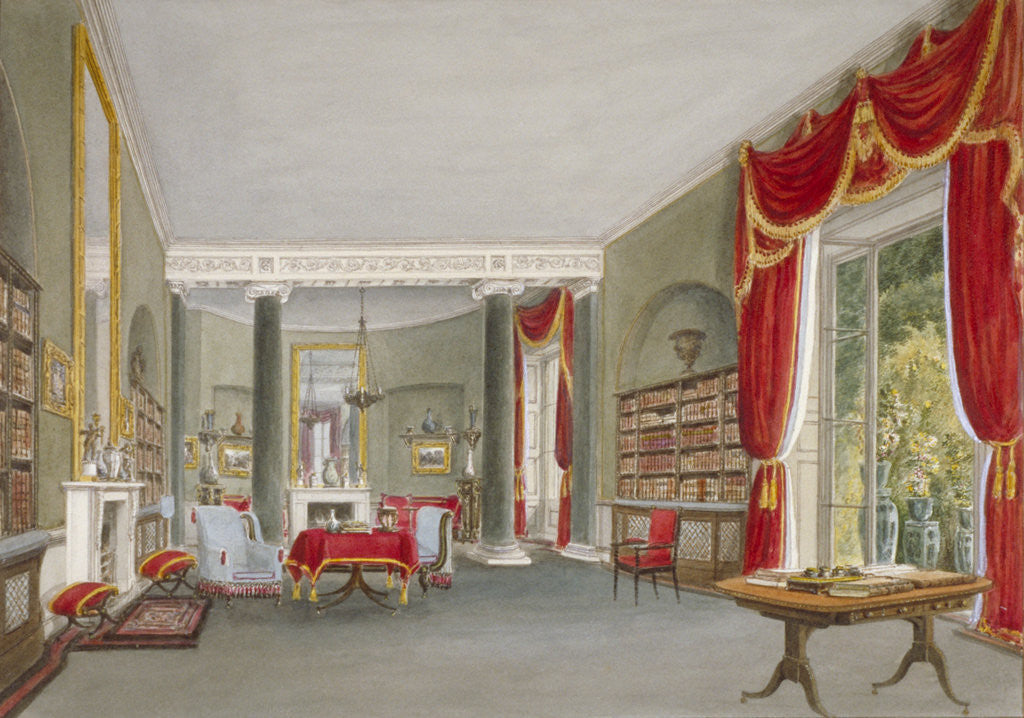 Interior view of the library drawing room in Bromley Hill, Bromley, Kent, 1816. Bromley is now in the London borough of Bromley.