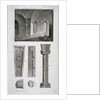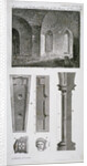 Interior view of the remains of the Church of St Martin's le Grand, City of London, 1818. With details underneath.