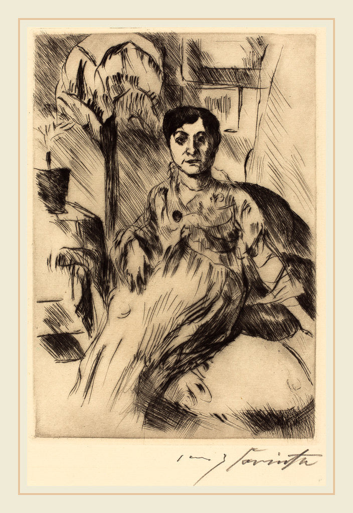 Lovis Corinth, Interior with Woman (Interieur mit Frau), German, 1858-1925, 1917, drypoint in black on laid paper
