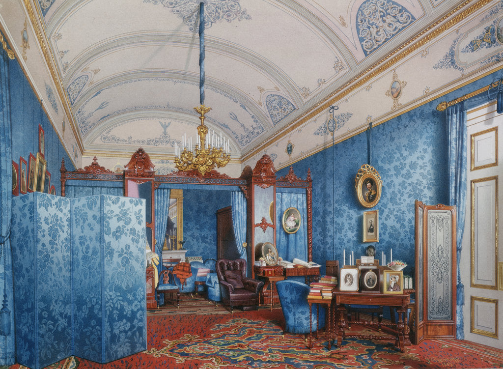 Interiors of the Winter Palace. The Dressing Room of Empress Maria Alexandrovna, 1857. Found in the collection of the State Hermitage, St. Petersburg.