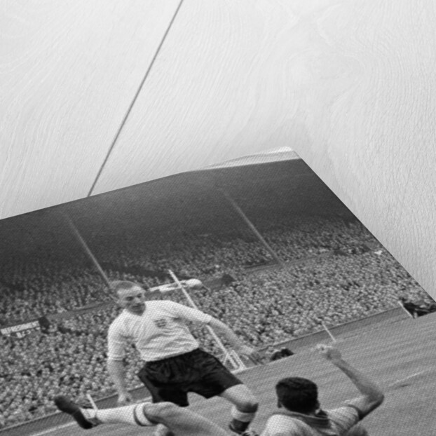 International Friendly match at Wembley Stadium. England 4 v Brazil 2. England's Stanley Matthews battles for the ball with Nilton Santos. 9th May 1956.
