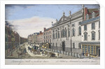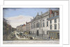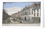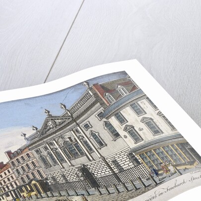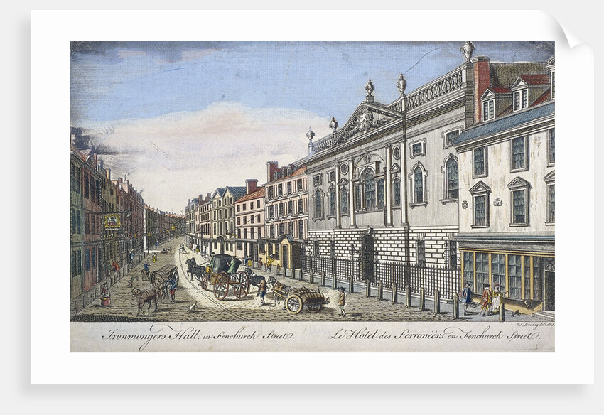 View of Ironmongers' Hall and Fenchurch Street, London, c1750 with a street scene and horse drawn vehicles. The new hall by Thomas Holden replaced the Elizabethan building which was in use until 1748.
