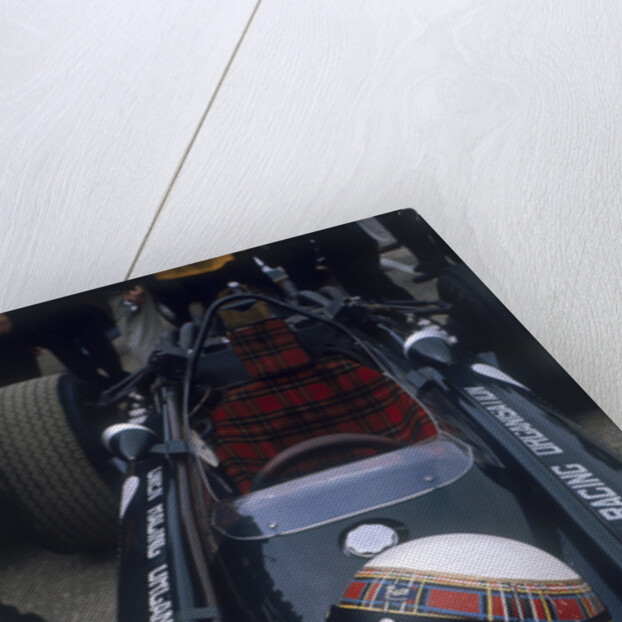 Jackie Stewart's racing helmet and gloves, British Grand Prix, 1967. Resting on a BRM car of the Owen Racing Organisation, for whom Stewart drove in his first three Formula 1 seasons. Scottish motor racing driver Jackie Stewart began his Formula 1 career in 1965, winning the Italian Grand Prix in his debut season. In a career lasting until 1973, he won a then record 27 Grands Prix, as well as three World Drivers' Championships, in 1969, 1971 and 1973. After suffering a serious accident in 1966, Stewart became a prominent campaigner for improved safety in motor racing. In 1997 he returned to Formula 1 as owner of his own team.