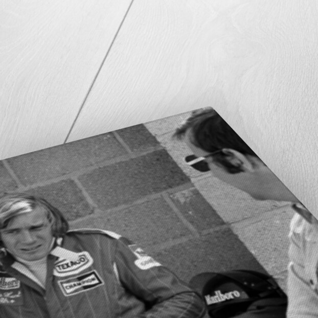 James Hunt puts his new car, the Marlborough-McLaren M.26, through its paces at Silverstone. It is hoped the car, designed by Concorde designer Gordon Coppenck, will be ready in time for the German Grand Prix this weekend. 23rd July 1976.
