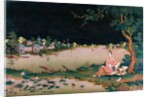 Product images of Japanese mirror painting showing a girl seated, c.1800