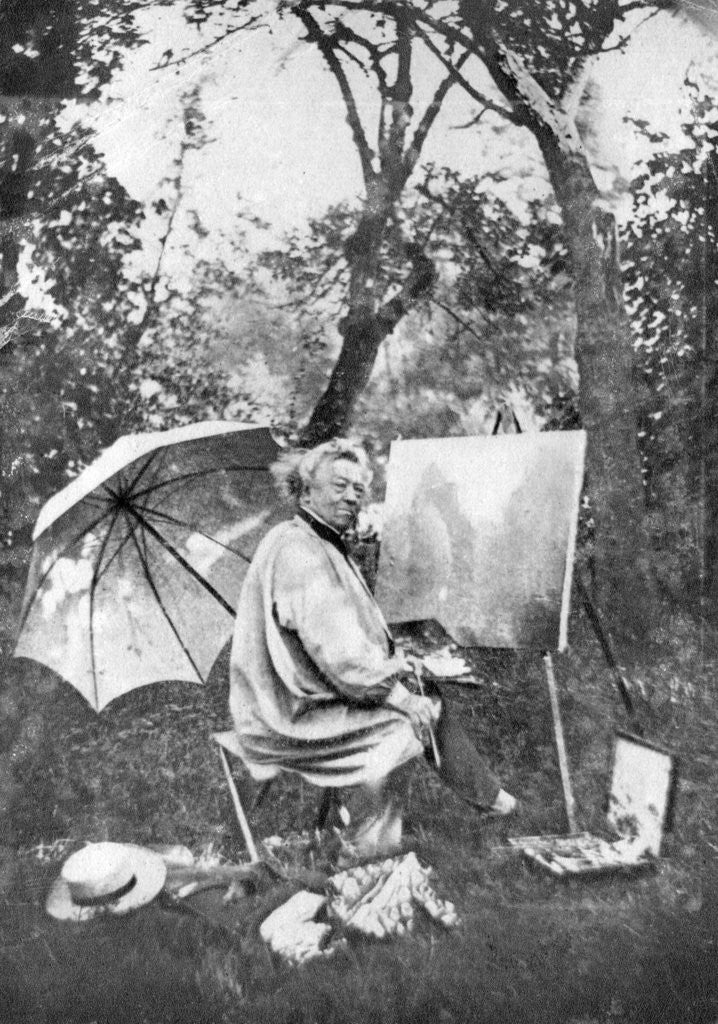 Jean Baptiste Camille Corot, French artist, c1845-1875. A landscape painter and printmaker, Corot (1796-1875) was a leading figure in the Barbizon School of the mid 19th century. A photograph from 'Album de Photographies, Dans L'Intimite de Personnages Illustres, 1845-1890', Editions MD, 22 Rue de L'Arcade, Paris 8, 1845-1890.