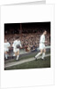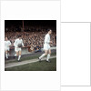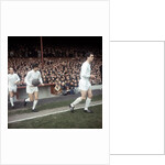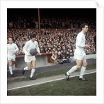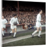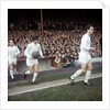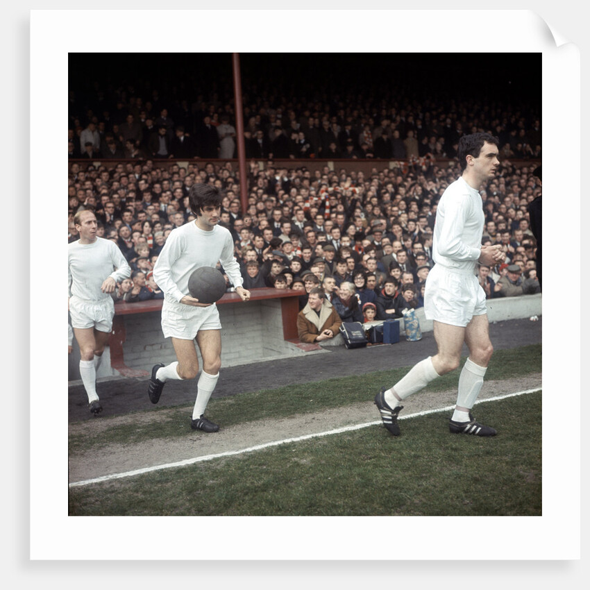 Johnny Aston leads Manchester United team mates George Best & Bobby Charlton onto the pitch Circa 1967.