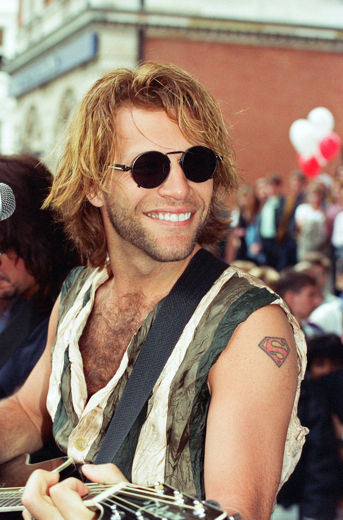 Jon Bon Jovi, lead singer of rock group Bon Jovi, busking in Covent Garden, London - and vowed a crowd of 5,000, 7th September 1994. Jubilant fans completely blocked the historic piazza as the heavy metal idol and his lead guitarist Richie Sambora belted out their greatest hits.