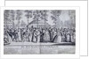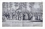 Jubilee Venetian masquerade ball in Ranelagh Gardens, Chelsea, London, 1749. People in fancy dress for a masquerade ball; some are dressed as monks and nuns, sultans or cossacks, others as characters from the Commedia dell'Arte including Pulcinello, or Mr Punch. The fashionable Rotunda can be seen behind.