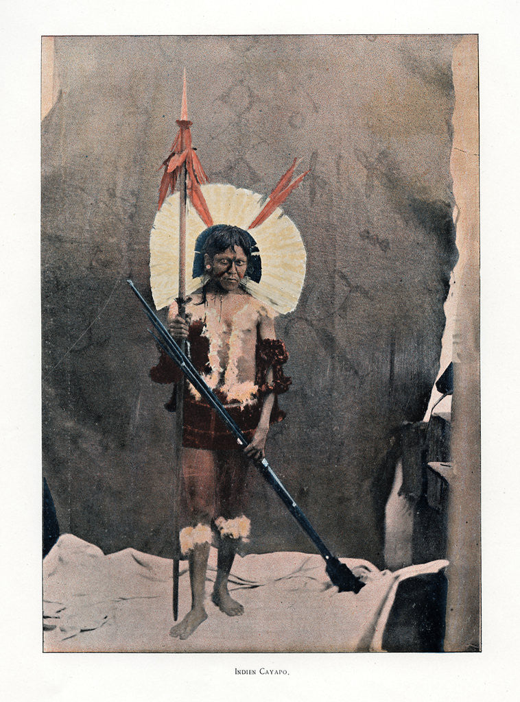 Kayapo Indian, 19th century. A man of the Kayapo tribe, the Gê-speaking native peoples of the plain lands of the Mato Grosso in Brazil.