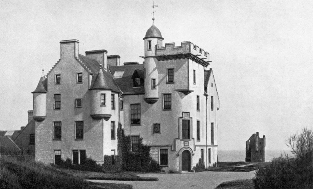 Keiss Castle, Caithness, Scotland, 1924-1926. In the foreground is the new Keiss Castle, built in 1755 by Sir William Sinclair of Dunbeath. The ruined castle built by George, 5th Earl of Caithness, around the end of the 16th century is in the distance. A print from Hutchinson's Britain Beautiful, edited by Walter Hutchinson, volume I, 1924-1926.