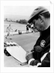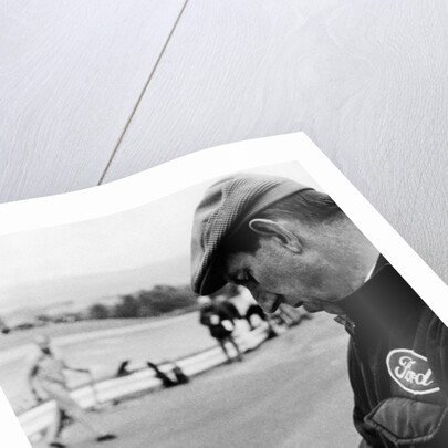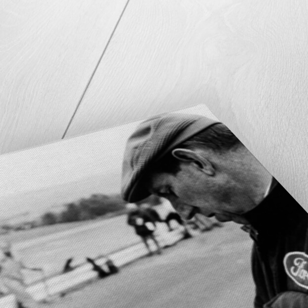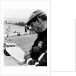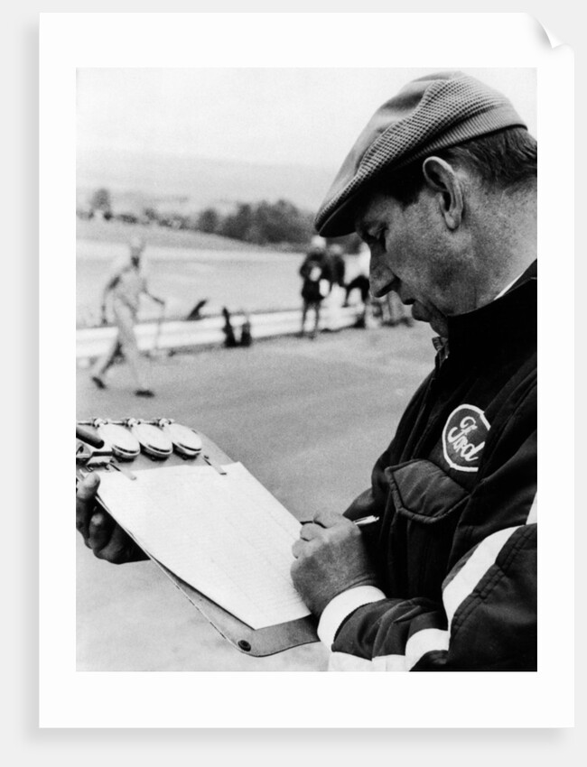 Ken Tyrrell noting down times, (c1970s?). He was a front-runner in F3 throughout the 1950s. In 1960 the Tyrrell Racing Organisation was established to run the factory Coopers in Formula Junior. At the start of 1964 Tyrrell was looking for a driver for the new Formula 3. The pairing of Jackie Stewart and Warwick Banks proved a great success, with Stewart winning the British Championship. In 1970 Tyrrell began to build the Tyrrell 001 chassis. For the 1971 season the car was developed into the Tyrrell 003, and Stewart went on to win his second World Championship. In 1976 the team produced the Tyrrell P34 six-wheeler. The Tyrrell team never gained the same momentum through the 1980s and 1990s, and had difficulties obtaining sponsorhip. In 1997 the Tyrrell family sold out to British American Racing (BAR).