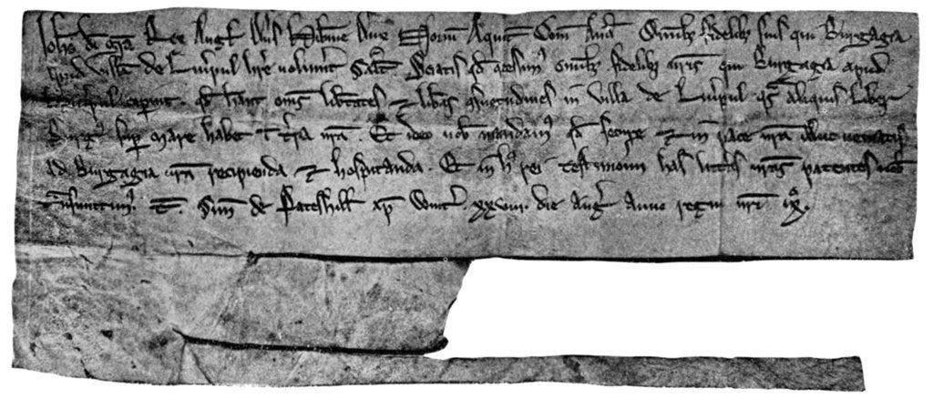 King John's charter, 1207 (1910). King John's charter invited immigrants to move and settle in Liverpool and was seen by many as the foundation for Liverpool?s growth. From The Connoisseur magazine (June 1910).