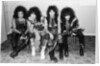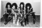 American rock group Kiss seen here in a very quick break between numbers at their concert at Wembley Arena, supposedly the first time they have been seen without their stage make up. Left to right are: Gene Simmons, Paul Stanley, Vinnie Vincent and Eric Carr. 23rd October 1983.