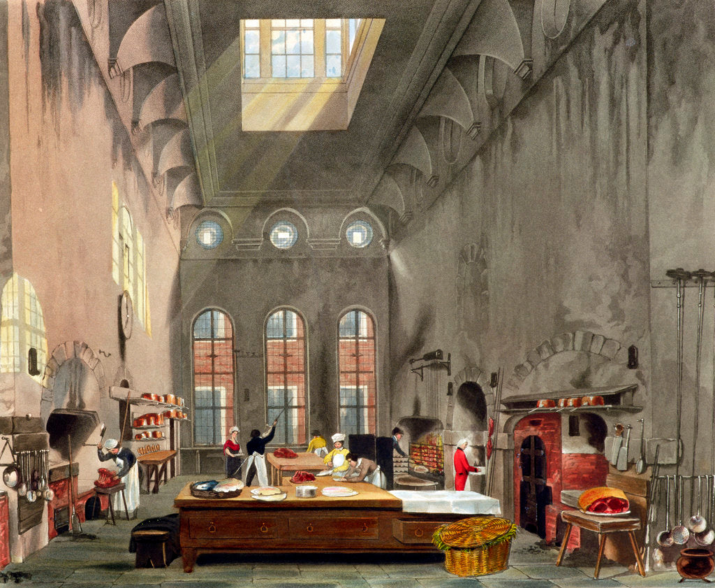 Kitchen, St James's Palace, London, 1819. From The History of the Royal Residences by William Henry Pyne (1769-1843).
