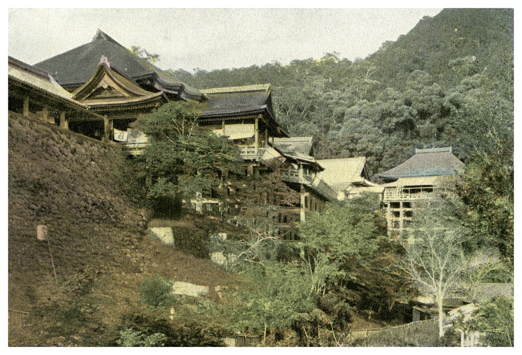 Kiyomizu Temple, Kyoto, Japan, 1904. The Buddhist temple of Kiyomizu-dera was originally established in the late 8th century but the buildings seen in the photograph date from the 1630s. A print from Japan, its History, Arts and Literature, Volume V, by Captain F Brinkley, TC and EC Jack, 34 Henrietta Street, London WC2 and Edinburgh, 1904.