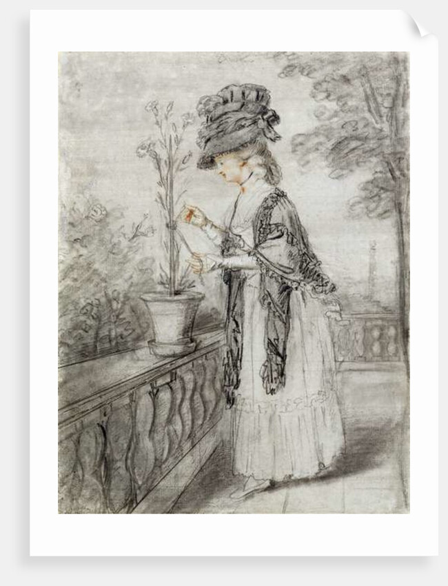 Product images of Lady on a Terrace Tending a Carnation Plant