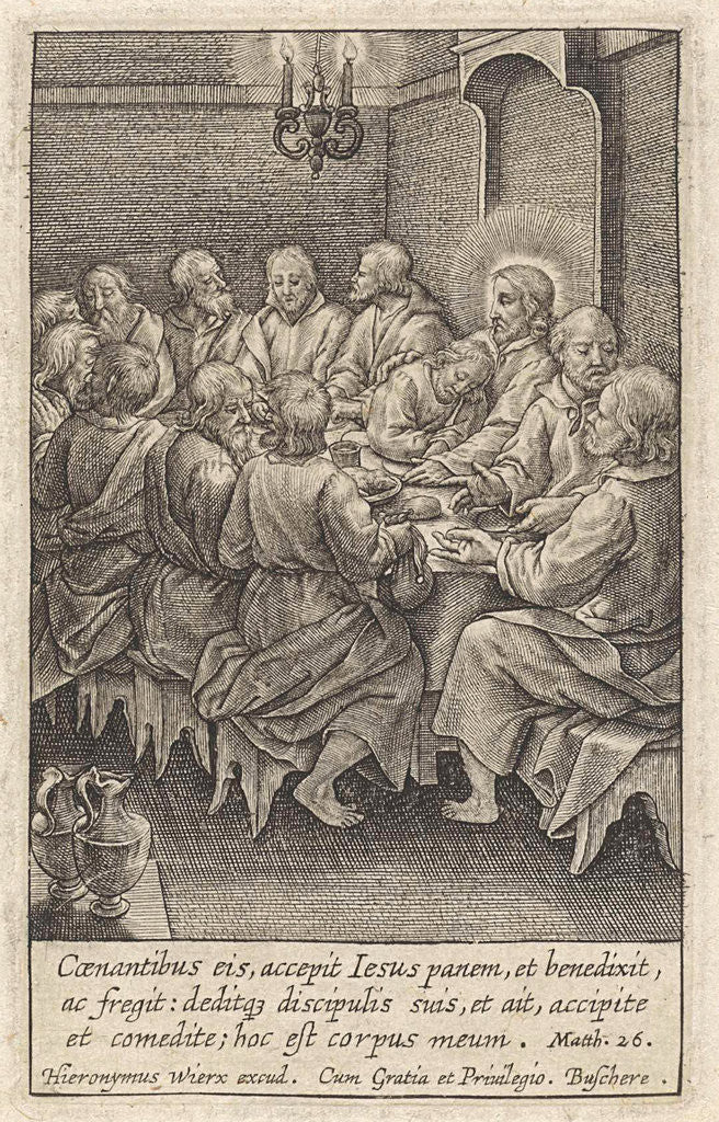 Last Supper, Christ and his disciples around a table, Hieronymus Wierix, 1563 - before 1619