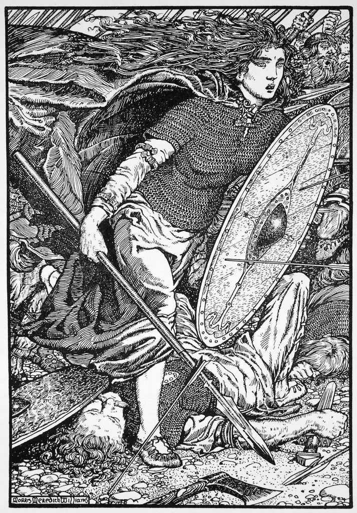 Lathgertha, 1913. Lathgertha is a semi-legendary Danish Viking shieldmaiden, one time wife of Ragnar Lodbrok. Illustration from The Northmen in Britain by Eleanor Means Hull, published 1913.