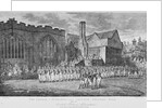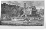 Leathersellers' Hall, and the Church of St Helen, Bishopsgate, City of London, 1871. View showing a display by the Cornhill Military Association with civilians looking on.