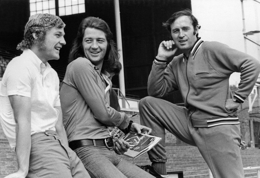 Leicester City manager Jimmy Bloomfield with his two new signings Denis Rofe )left) and Frank Worthington. August 1972.