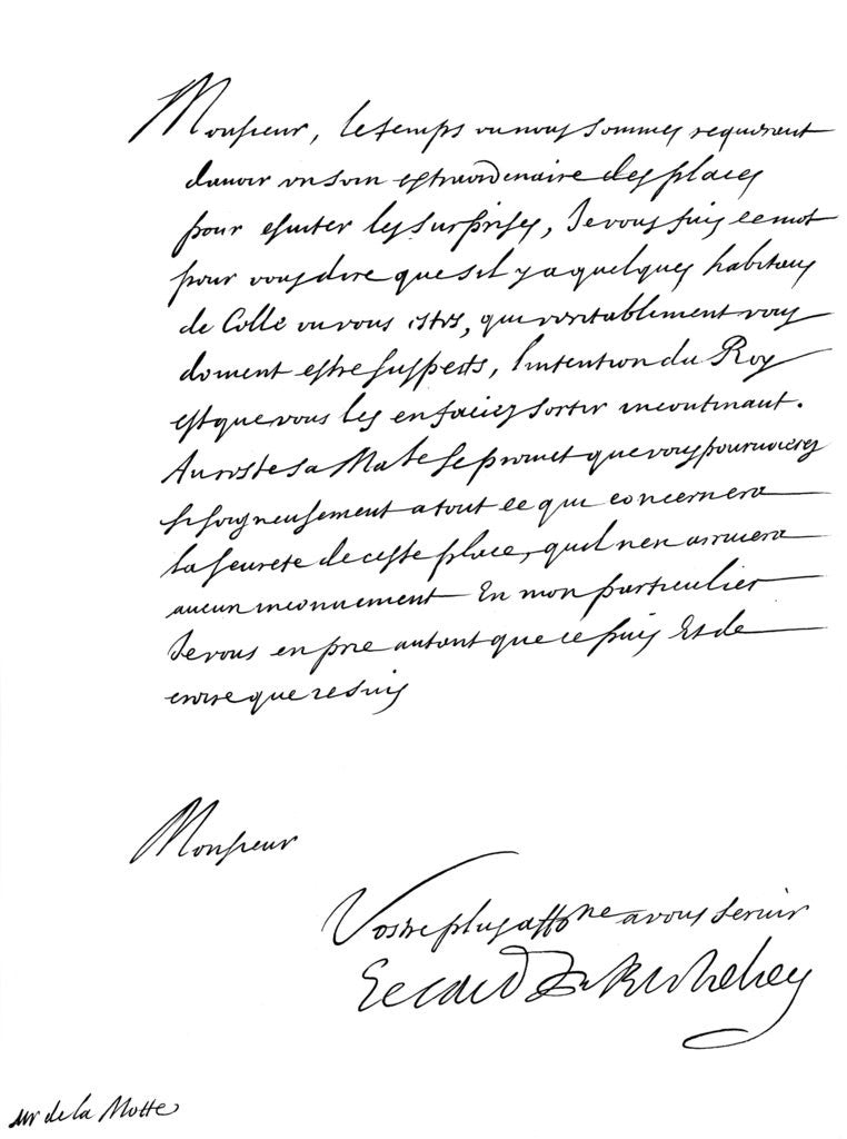 Letter by Cardinal Richelieu, to Monsieur de la Motte